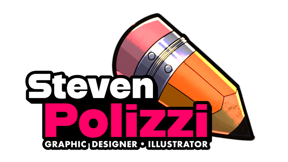 Logo featuring a large sharpened colored pencil and the text 'Steven Polizzi Graphic Designer Illustrator'.